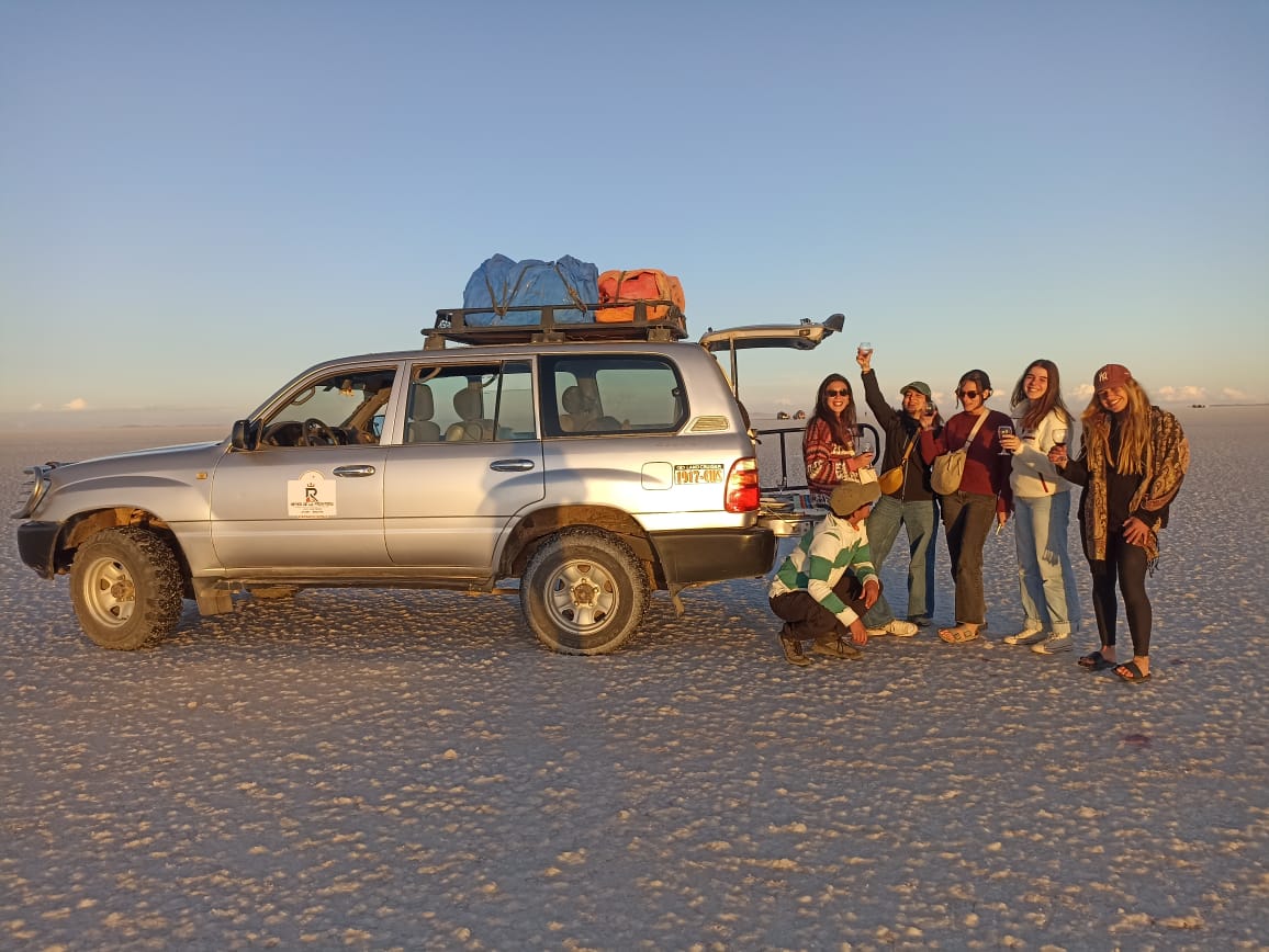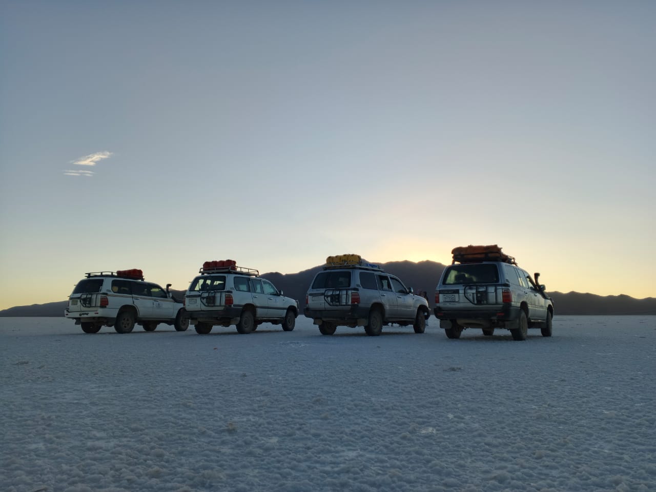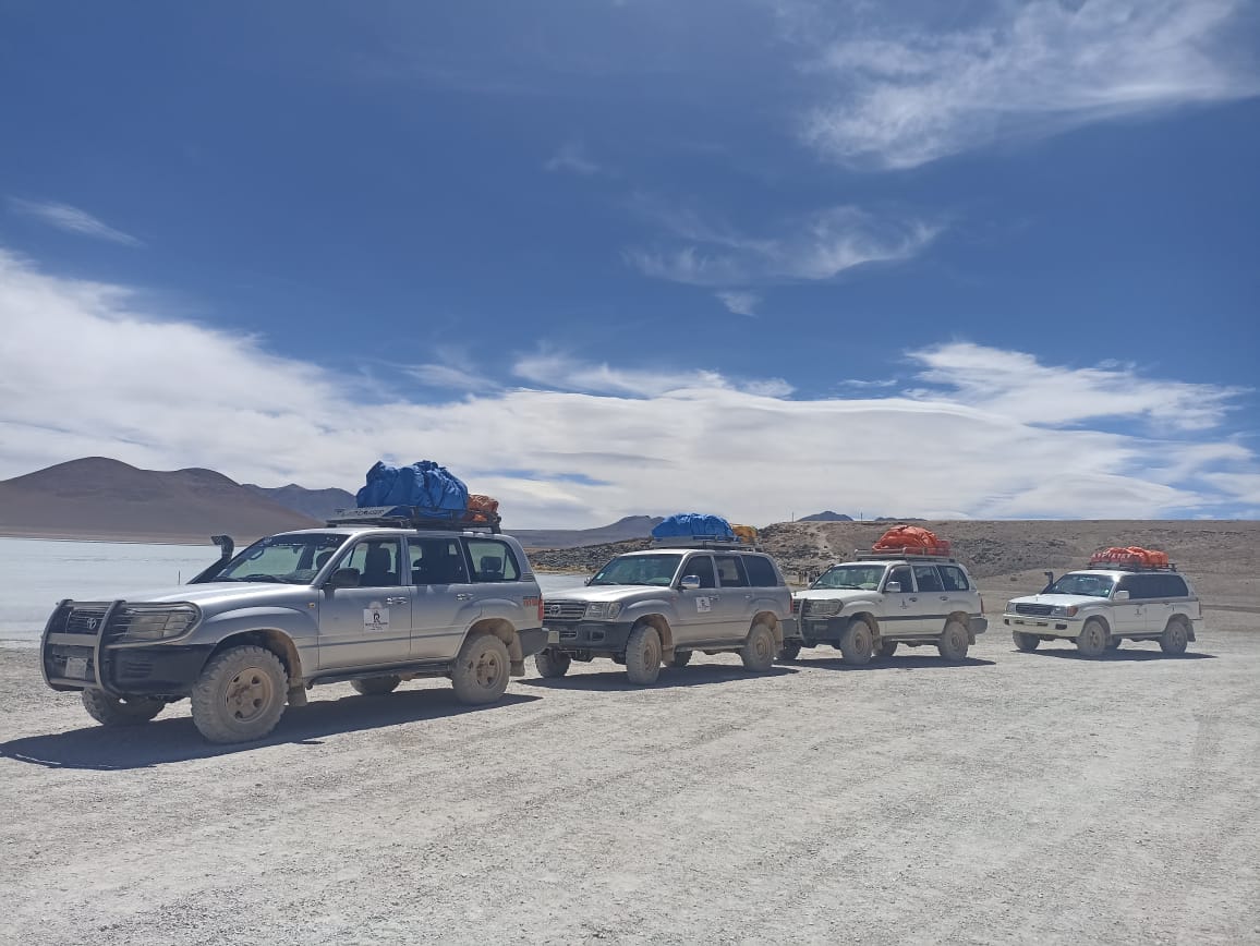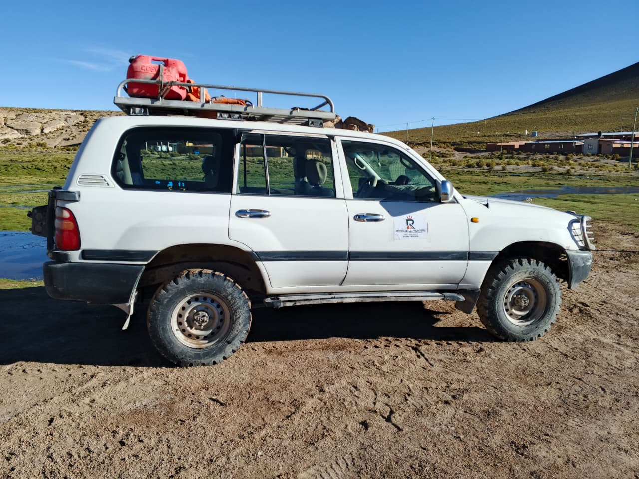 Partida desde su hotel de San Pedro de Atacama a las 07:00 hrs. En mini bus hasta la frontera de Bolivia, pasando por las inmigraciones de Chile y Bolivia, una vez en la frontera de Bolivia a una altura de 4.400 de altura sobre el nivel del. se realiza el cambio de vehículo a un jeep TOYOTA LAND CRUISSER 4WD con capacidad de 04 pax.