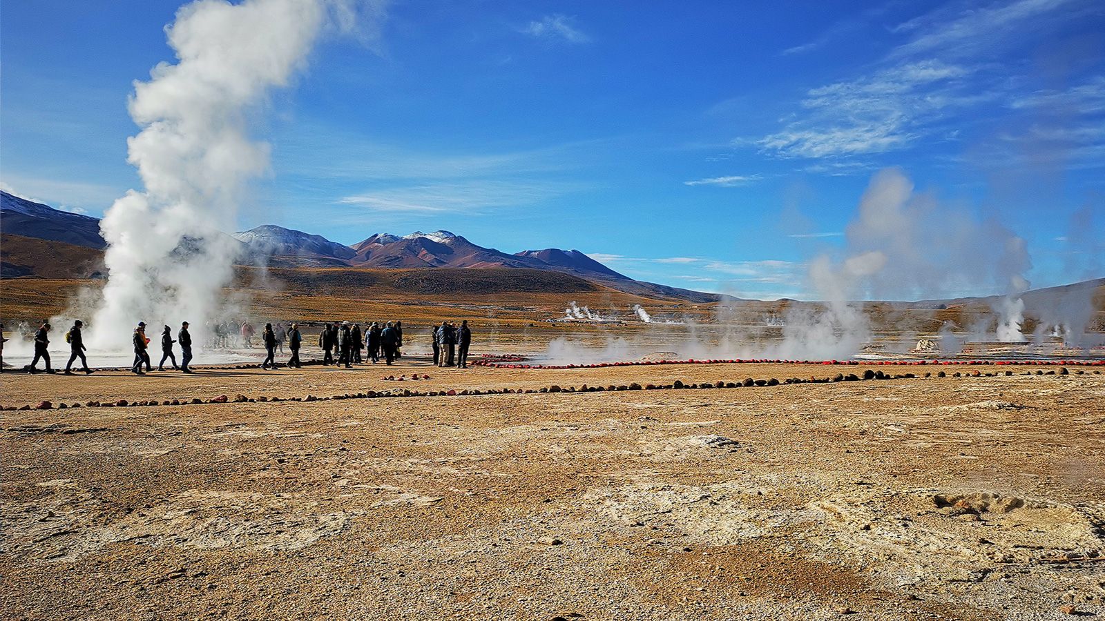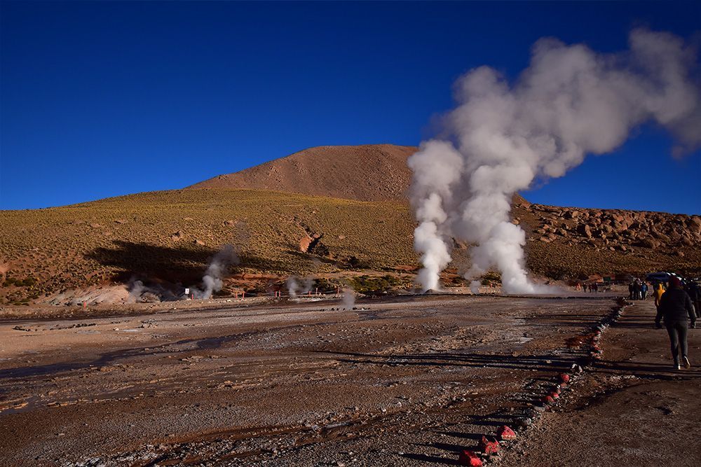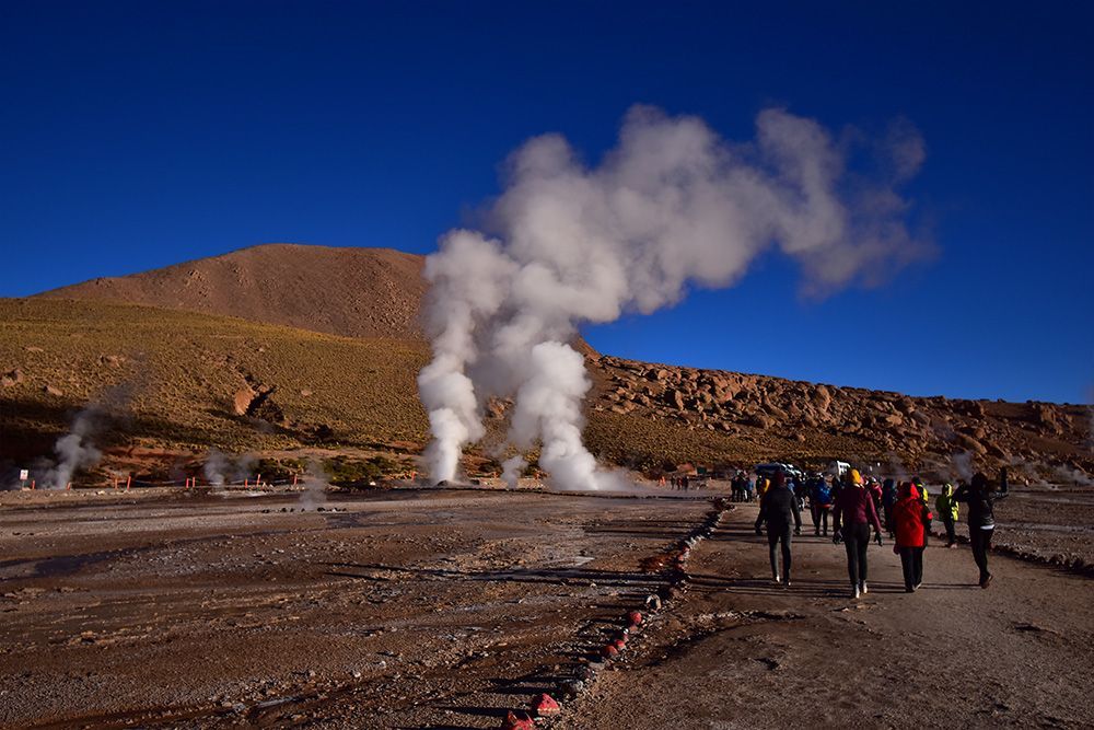 Te impactarán más de 70 fumarolas de las que afloran chorros de vapor y forman pozas de agua hirviendo, su mejor rostro se presenta a primera hora del día, que es cuando nacen bellos colores entre el contraste del cielo intensamente azul y el vapor prístino de los Géiseres.